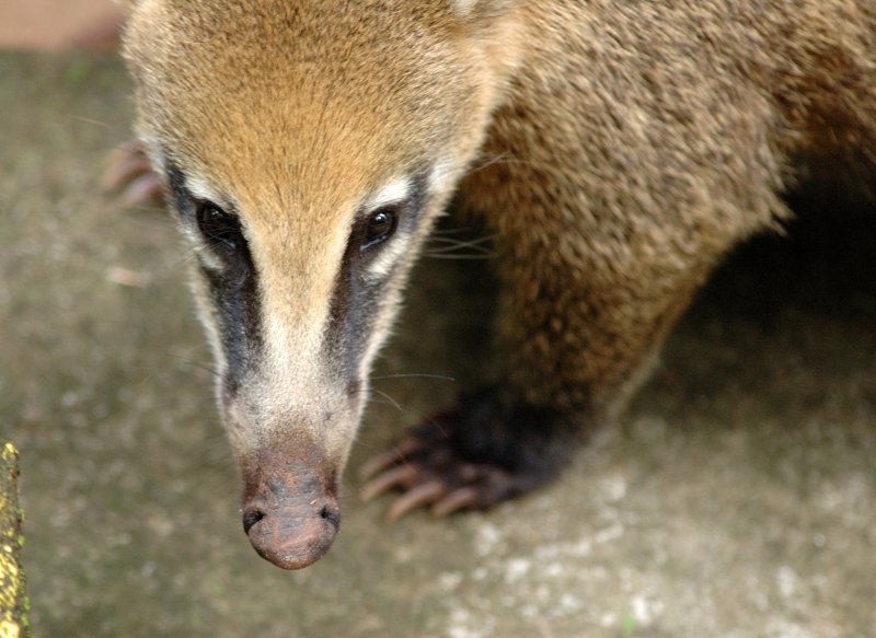 This Koati explores with its sensitive nose the paths and bushes of the Iguacu park. It also investigates the backpacks of the tourists. It is the South-American relative to the racoon of the northern America. They have a shrieking voice but very quiet, and must of the time they are silent.
