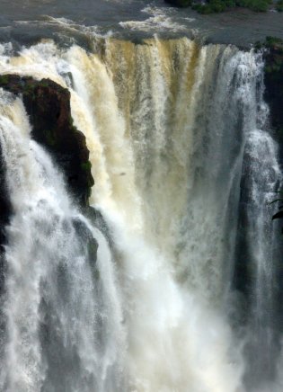 The water of the Rio Iguacu crashes into the depth where they will meet with the waters of the Parana. With its 1.320 km through Brazil and along its borders with Argentinia, the Iguacu is one of the major South-american streams, but allegedly it is most famous for its great waterfalls.