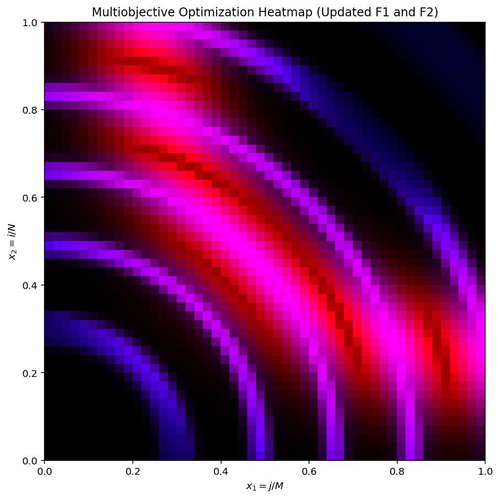 This post presents a heatmap visualization for multiobjective optimization, illustrating Pareto dominance and epsilon dominance between two conflicting objective functions: