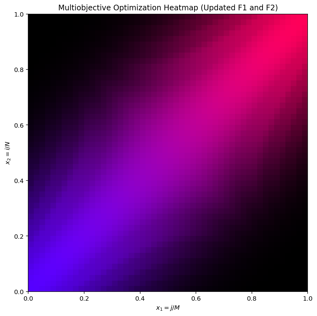 This post presents a heatmap visualization for multiobjective optimization, illustrating Pareto dominance and epsilon dominance between two conflicting objective functions: