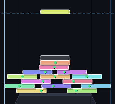 A companion Pygame implementation [4] lets you experiment with the same mechanics. It works in pixel coordinates, but the mapping is conceptually simple: one book length in the paper corresponds to one book width in pixels. The game computes a resultant load position and routes it to bracketing overlap endpoints (an “endpoint-tree” implementation of the same model).