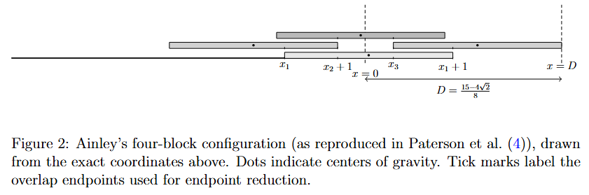 - M. Paterson, Y. Peres, M. Thorup, P. Winkler, and U. Zwick, “Maximum overhang,” American Mathematical Monthly, 116 (2009), 763–787.