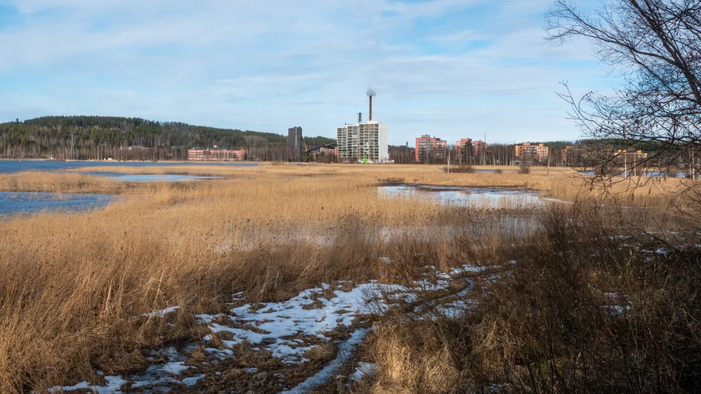 I spotted them while cycling along the Rantaraitta trail around the lake. In the melted part of the otherwise still frozen lake, they were dipping beneath the water in search of food. I took the landscape photograph from the birdwatching hut, while the swans were in another bay of the half-thawed lake, roughly in the upper-left part of the image. The swan photo was taken with a Sony RX10 M4 camera at a fast shutter speed of 1/1000 s, since the sunlight made it challenging not to overexpose their white plumage. My aim was to capture both the atmosphere of the melting lake and the two swans as a couple from different distances and perspectives.
